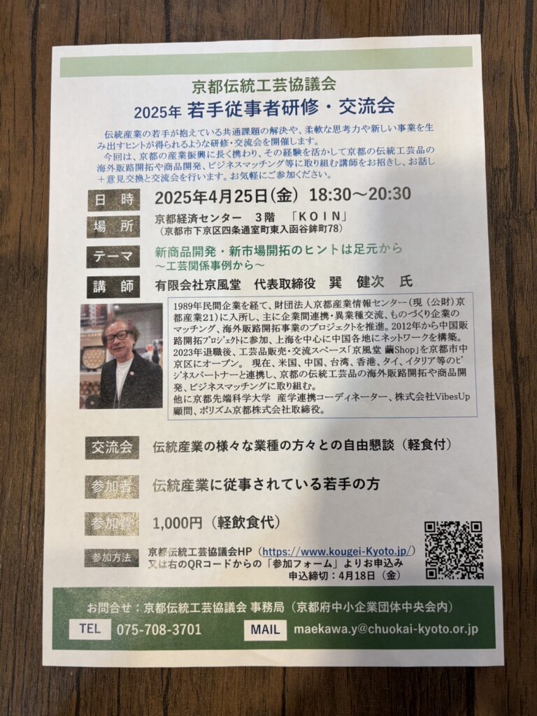 2025年4月25日 京都中小企業団体中央会主催 京都伝統工芸協議会2025年若手従事者研修・交流会にて講演させていただきました。